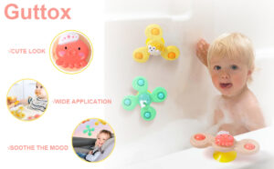 Guttox Baby Suction Cup Bathing Toy,3PCS Bathroom Animal Turntable Rotating Windmill Water Play Bath Toy for 1 2 3 Years Baby Boys Girls
