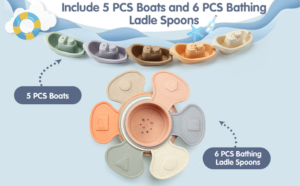 Baby Bath Toys for 1-3 Year Olds Floating Boats with Bathing Spoon, 11 PCS Bathtub Mould Free bath toys for Babies Water Table Toys Toddler Birthday Gift for Preschool Boys/Girls
