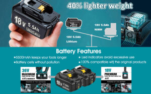 2X 5.5Ah BL1860B 18V Replacement for Makita Batteries BL1860B BL1860 BL1850B BL1850 BL1860B BL1840 BL1840B BL1830B BL1830 BL1820 BL1815 BL1835 BL1845 LXT-400,with LED Indicato