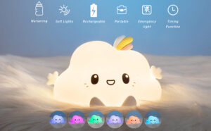 Cute Cloud Night Light, Baby Night Light Kids Night Lamp, 7 Colour Changing LED Portable Cloud Lamp, USB Chargeable Battery Cloud Light,Bedroom Sleep Decoration Cloud Nightlight for Children Kids Gif