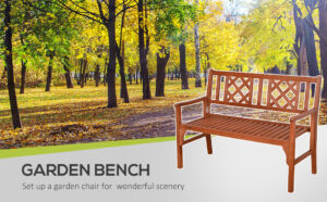 Trueshopping Outdoor Teak Garden Bench Seat – Weatherproof 2-Seater Classic Solid Hardwood Bench – Essential Conservatory, Garden, Patio & Decking Furniture with Oil Finish