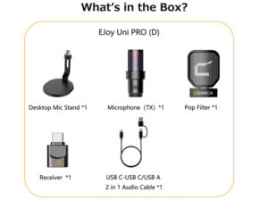 comica Wireless USB Microphone for Computer and Smartphone,48kHz/24bit RGB Cardioid Condenser Gaming Mic for Podcasting,Streaming,Recording with Boom Arm Stand-Black (EJoy Uni Pro A)