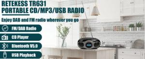 Retekess TR631 DAB Radio with CD Player, Portable CD Player with Bluetooth Boombox, Support USB AUX, Stereo, Alarm, Sleep Timer, LCD Backlight (Black)