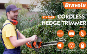 Bravolu 21V Cordless Hedge Trimmer, 51cm Dual-Action Blade, Hedge Trimmer Cordless with 4.0Ah Battery and Fast Charger, 1400 RPM, Electric Hedge Trimmer for Shruber and Yard Hedge Cutting