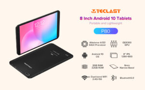 TECLAST Tablet 8 Inch P80 2GB RAM 32GB ROM(512GB TF Expand) Android 10 Tablet With Quad Core 1.6GHz Allwinner A133 Processor,1280×800 HD IPS Display,2.4G+5G WiFi,Bluetooth 5.0,Type-C Supports