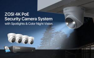 ZOSI 4K PoE CCTV Security Camera System with 2-Way Audio, 8CH H.265+ NVR with 2TB HDD, 4x8MP Outdoor PoE IP Cameras, Color Night Vision, Waterproof, AI Human Detection, Smart Light Sire