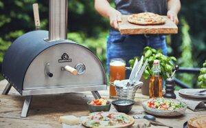 BURNHARD Nero Stainless Steel Outdoor Pizza Oven incl. Pizza Slicer & Pizza Stone, Pizza Oven, Premium Wood-Fired Oven for the Garden, can be used with Pellets, Charcoal & Briquettes