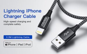RAVIAD iPhone Cable Short [1FT/30CM, MFi Certified] Nylon Braided iPhone Charger Cable USB Fast Charging Lightning Cable for iPhone 11 Pro Max X XS XR 10 8 8 7 Plus 6 6s 5s 5 SE 2020 – Black