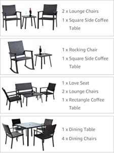 C-Hopetree Outdoor Rocking Chair for Outside Patio Porch, Metal Frame, Black All Weather Wicke