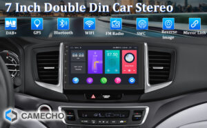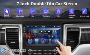 Camecho Bluetooth Car Stereo 7 Inch Touch Screen Double Din Car Radio Support Mirror Link for Android & IOS/with FM Radio/USB Phone Charging with 4 LED Backup Cameras + Microphone + 2 Din Frame