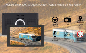XGODY SAT NAV(9 inch), with 2022 UK Europe Maps (Free Lifetime Updates), GPS Navigation for Car Truck Lorry HGV Lorry Motorhome, Post code POI, Driver Alerts, Lane Guidance