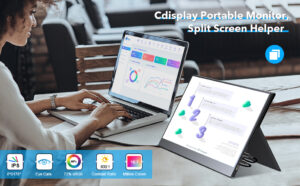 Portable Monitor, cdisplay 15.6 Inch External Monitor, 1080 Full HD IPS Screen, Gaming Monitor with Type-C, Mini HDMI and Built-in Speakers for Laptop, Mac, Xbox, PS4, Phone with Include Smart Cove
