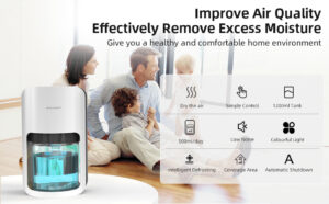 Dehumidifier CEFNOON Automatic Defrosting 1200ML, Dehumidifiers for Home Damp with One-tap Operation & Auto Off, Low Noise Good for Sleeping, Moisture Absorber Used on Home Damp, Mould, Moisture