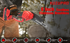 KUZUPRO Mini Chainsaw 6 Inch, Cordless Chainsaw Brushless with 2 Batteries 2.0Ah, 2 Chains, 10m/s Chain Speed Electric Power Chainsaw for Tree Branches, Courtyard, Household and Garde