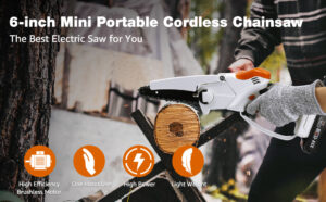 Mini Chainsaw Cordless, 6 and 4-inch 2-in-1 Brushless Motor Chainsaw Kits with Super Power, Operated Electric Chain Saw for Cutting Wood Branches