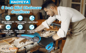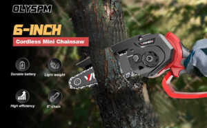 OLYSPM Mini Chainsaw Electric Chainsaw,21V 6 Inch mini chainsaw cordless with Security Lock,Handheld Small Chainsaw for Pruning Trees and Branches Wood Cutting(2 Batteries/2 Chains)