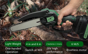 Mini Chainsaw Cordless 6 Inch, Electric Chainsaw with 26V Rechargeable Batteries and 2 Chain Saws, One-Handed Portable Battrery Chainsaw for Tree Branch Wood Cutting