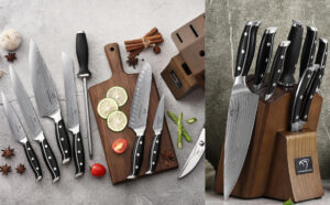 NANFANG BROTHERS 9 Pieces Kitchen Knife Set Sharpening for Chef’s Knife Set with Block, Damascus Professional Knife Damascus Steel Knife for Kitchen Knife with Sharpener and Scissors