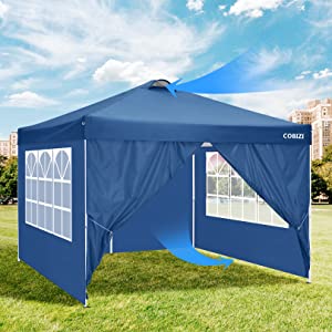 COBIZI Gazebos 3x3m Waterproof Pop up Gazebo With Air Vent, 4 Side Walls, Dark Black