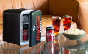 Coca-Cola Zero Portable 6 Can Thermoelectric Mini Fridge Cooler/Warmer, 4 L/4.2 qt, Black, 12V DC/110V AC for home, dorm, car, boat, beverages, snacks, skincare, cosmetics, medication [Energy Class A]