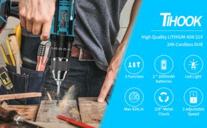TIHOOK Cordless Drill Driver 21V, Cordless Hammer Drill