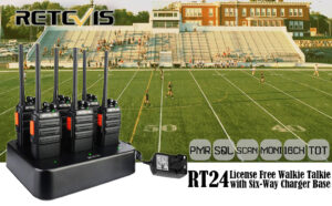 Retevis RT24 Walkie Talkies 6 Pack with Six-Way Charger Retevis RT24 walkie talkie is easy-to-use, PMR446 license-free walkie-talkie, good sound quality, long standby time, long distance, excellent quality, resistance to falling, and some waterproof performance. Packed with with Six-Way charger which can let you charge 6 RT24 walkie talkies simultaneously, very convenient and efficient. Wildly used for large-scale groups and labor-intensive activities, such as warehouse, restaurants, supermarket, logistics company and enterprise. What’s in the box 6 x Retevis RT24 walkie talkies 1 x Six-Way Charger base 6 x 1100mAh Li-ion Batteries 6 x Belt Clips 6 x Sling 1 x User’s manual Features of Six-Way Charger 1: Save time and space: This six way charger can charge 6 RT24 walkie talkies simultaneously, very convenient and efficient. 2: Safe and reliable: With multiple safety protection, overcharge protection, short circuit protection etc. 3: Charging indicator allows you to observe the charging status: The indicator light is green when the power is turned on, red when charging and green when fully charged. Specification: Input 5V/4A Output: 4.2V Charging current: 500mA(per pocket) Dimension: 25 x 20 x 6cm/9.84 x 7.87 x 2.36in Weight: 965g/34.04oz(include adapter) (AC 100V-240V) power supply Specifications Channels: 16 Voltage Rating: 3.7V DC Battery: lithium-ion 1100mAh Size: 230 * 62 * 34mm per piece Weight: 193g (battery included) per piece PMR446 Licence-free walkie talkies What is PMR446 walkie talkie? European requirements for PMR446 license-free walkie talkies: 1. The transmit and receive frequencies must comply with the provisions of PMR446. 2. The antenna must be fixed, non-removable. 3. Transmitting power ≤0.5W. RT24 walkie talkie is fully compliant with these requirements and is a completely license-free PMR446 walkie-talkie. Alloy metal middle frame Thickened alloy metal middle frame design, not only can effectively dissipate heat, but also improve the fall resistance of the walkie-talkie. Even if it falls from a high place, it also not easy to be damaged. Good sound quality Good sound quality, using high-fidelity audio unit, the sound is loud and not harsh, made you feel like you are talking with your partner face to face. Long range Depending on the working environments, the calling distance reaches about 0.62 – 1.24mi (1 – 2 km) in the cities and 1.24 – 1.85mi (2 – 3 km) in open field. Security walkie talkies 16 channels and 50CTCSS 105DCS can prevent from receiving stranger’s signal which keep your communication private and secure. Comfortable PTT button The orange PTT button on the side is comfortable to press. When talking, press the PTT button to talk into the microphone and release the PTT button after speaking, which is convenient and efficient. Strong and durable belt clip With high-quality belt clip, you can easily fix it on the belt, easy to carry. Why you choose RETEVIS: 1. Independent brand: Our company focuses on making our own brand — RETEVIS. So, we pay more attention to the quality of our products. 2. Stable performance: Each product uses high-quality circuit components; to ensure all the product have stable performance, multiple tests are required before leaving the factory 3. Excellent workmanship: From the design of the appearance to the choice of materials, every section must be designed and experimented by the designers for dozens of days; we strive to make every detail perfect. 4. Versatile: Besides stable basic functions, each walkie-talkie also has its own characteristics to meet the different expects of users; from here, you will always find the products that meet your requirements. RETEVIS, wireless communication service expert around you, is a growing brand of two way radio. Equipped with the advanced production equipments and professional workers, we are always pursuing Quality and Technology innovation We set up US, GB, AU, DE, IT, FR, ES and NG overseas warehouse. Till now, we have sold more than 180 countries, especially countries from North Americans and Europe. In one word, We not only sell RETEVIS radios, but we have taken the time to improve RETEVIS for everyone. Characteristics Usb charger has multiple safety protection Large battery capacity Large Capacity;Portable Carrying Case with Adjustable Shoulder rugged and professional, portable charging small and light, iron belt clip IP54 waterproof and dustproof; 360 degrees metal clip;Louder speaker and microphone;3.5mm audio Jack compatible Retevis RT24 RT27 RT28 RT22 RT622 RT45 RT617 RT618 RT619 RT40 RT46 RT7 walkie talkies and other with USB charger devices Retevis RT24 Two Way Radio Retevis RT24 RT45 Baofeng eSynic Kenwood Motoralo HYT Floureon Tacklife Radioddity two way radio PMR446 walkie talkies PMR446 walkie talkies Two Way Radio Retevis RT24 RT28 RT619 RT85 Baofeng UV5R 888S Check Offer Price Dimensions: 23 x 3.4 x 6.2 cm; 425 Grams Model: FGBA9059G-C9059B Batteries Included: 6 Lithium ion batteries required. (included) Manufacture: Retevis