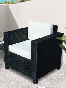 Outsunny 1 Seater Rattan Garden All-Weather Wicker Weave Single Sofa Armchair with Fire Resistant Cushion – Black