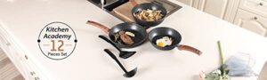 Kitchen Academy 12 Pieces Nonstick Granite-Coated Cookware Set, Black – Bakelite Handle with Wood Effect (Soft Touch)