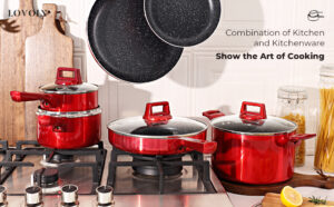 Nonstick Pots and Pans Set, 10 Piece Cookware Set, Induction Pot and Pan Sets with Glass Lids, Saucepan, Saute Pan with Lid, Frying Pan, Red & Black