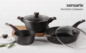 SENSARTE 16 cm Nonstick Sauce Pan with Glass Lid, Saucepan for Stove Top, Healthy Nonstick Pot with Lid, Small Soup Pan Milk Pan, PFOA Free