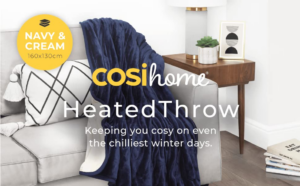 Cosi Home® Heated Throw – Electric Blanket – Extra Large Heated Blanket, Machine Washable Fleece with Digital Remote, Timer and 9 Heat Settings (Navy & Cream)