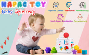 HapagToy Baby Sensory Shape Sorting Toys for 1 2 Year Old, Montessori Sorter Toys with Colorful Cube and Elastic Bands, Babies Colorful Shape Sorters Early Educational and Motor Skill