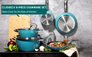 CUSIBOX Cookware Set Ceramic Nonstick Pan & Pot Set 8 Piece, Stock Pot, Frying Pan, Saucepan, Casserole, Saute Pan Glass Lid | Induction |