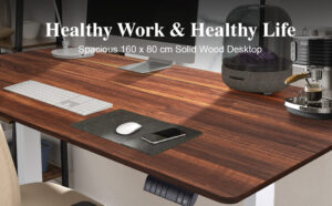 KAIMENG Height Adjustable Electric Standing Desk, Upgraded 160 x 80 cm Sit Stand Desk With Casters, Stand Up Home Office Desk with Splice Board, White Frame/Brown Top