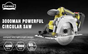 Cordless Circular Saw,DEWINNER 165mm 4300RPM, 20V 3.0Ah Li-ion Battery and Charger Include. with Laser Guide DELIVERY CONTENTS 1 x DEWINNER Cordless Circular Saw; 1 x 24T saw blade; 1 x Allen wrench; 1 x guide ruler;1 x user manual SAFETY SWITCH AND ALUMINUM GUARD With the safety switch, it can effectively reduce accidents; Aluminum guard increase the diversity of use and extend tool life. Optimized ergonomic slim grip provides ease and less fatigue to one-handed operation. LASER GUIDE AND SCALE RULER Built in laser guide makes the cutting more straight, accurate and professional. And the guiding ruler ensures to guide and control the cutting width. Cordless Circular Saw,DEWINNER 165mm 4300RPM, 20V 3.0Ah Li-ion Battery and Charger Include. with Laser Guide ADJUSTABLE CUTTING DEPTH AND CUTTING ANGLE The cutting angle of 90 ° can reach the cutting depth of 65 mm. The inclination angle of 45 ° can reach a cutting depth of 52 mm, so that different cutting angles can be set. 0° – 45° Bevel Cutting Achieve up to a 45° finish on your workpiece by loosening the bevel thumb lever and using the detents to get the exact angled tilt required Continuous Cutting This cordless circular saw uses strong pure copper motor, which is powerful and has a longer service life. It is also equipped with a 3.0ah large-capacity lithium-ion battery, equipped with a fast charger, 1 hour fast charging, Up to 20 minutes of uninterrupted run time, it is not limited by distance, and it is more portable. Adjustable Depth of Cut Plunge cuts are now easy. Simply loosen the rear thumb lever to find your depth of cut. From 0 to 65mm and anywhere in between Safe Cutting The soft rubber handle is non-slip, maintains good stability and clamping force, and has a safety switch to prevent accidental opening of the circular saw and ensure the safety of work; the aluminum protective cover enhances durability and extends the power of the electric circular saw life. Check Offer Price Weight: 3.83 kg Dimensions: 35 x 25.1 x 19.2 cm; 3.83 Kilograms Manufacture: DEWINNER