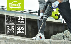 DEWINNER Rotary Hammer Drill,SDS Plus Vibration Control and Safety Clutch, 1500W Heavy Duty, Including 3 Drill Bits,Flat Chisels, Point Chisels, Drill Chuck, 360°Rotating Handle, with Carrying Case
