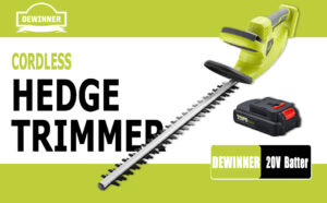 DEWINNER Cordless Hedge Trimmer with Cover, 20V 2000mAh Lithium ion Battery, Electric Cutter, 65CM Blade, Cutting Length 51cm, 16 mm Tooth Opening Capacity, 1Hr Fast Charger.