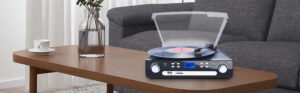 DIGITNOW! Vinyl Record Player, Bluetooth Turntable with Stereo Speakers, Turntable for Vinyl to MP3 with Cassette Play, AM/FM Radio, Remote Control, USB/SD Encoding, 3.5mm Music Output Jack