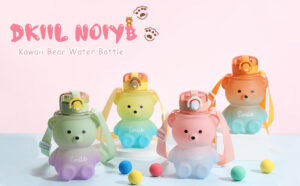 Kawaii Bear Water Bottle With Straw, Leak-Proof Kawaii Water Bottle 800ml Cute Gradient Colorful Kawaii Water Bottles For Girls School Office Travel