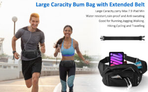4 Pockets BumBags Ladies 35cm Extended Belt Large Waist Bum Bag Men,Large Capacity Waist Bag Waterproof Black Fanny Pack for iPad Mini & iPhone- Gift Bag Women for Sport Travel Hiking Cycling