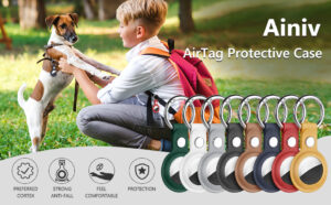 Ainiv Protective Case for Apple Airtags, Green PU Leather