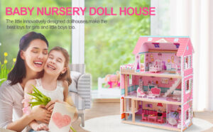 ROBUD Modern Dollhouse Wooden Dolls House Girls Playset Furniture Accessories Kids Lift Stai