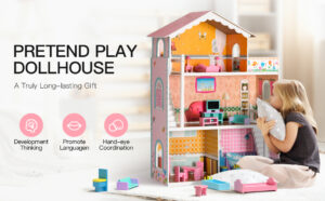 ROBUD Dollhouse Large 3 Story Girls Gift 3 4 5 6 Years Old Playset Doll Villa with Wooden Furnitures