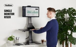Vonhaus Electric Standing Desk Converter – Height Adjustable Sit Stand Desk Riser with Monitor Arm and Keyboard Tray – up to 32inch Screens