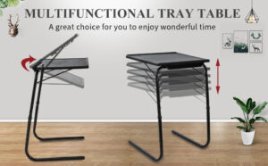 Adjustable Folding Table, TV Dinner Tray Table, Laptop Table,Side Table for Sofa Bed,Black