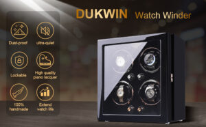Fingerprint Watch Winder, DUKWIN Automatic Watch Box for 12 Watches with LCD Remote Control Led Light Quiet JapMotor,Powered by AC Adapter(British Plug)