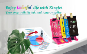Kingjet 912XL Ink Cartridges New Chip Replacement for HP 912 912XL Ink Multipack Compatible with HP OfficeJet 8012 8015 8017 8024 8025 Printer (Black Cyan Magenta Yellow), 4 Pack