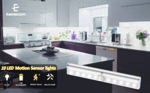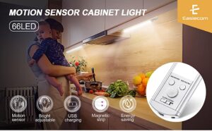 Motion Sensor Light Indoor 10 LEDs Under Cabinet Light Automatic USB Rechargeable Magnetic Motion Activated Light with Magnetic Strip Night Light for Kitchen Wardrobe Closet Cupboard Hallway 4 Pack [Energy Class A+++]