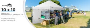 EAGLE PEAK 3m x 3m Professional MarketPlace Pop Up Canopy Tent Instant Outdoor Canopy Easy Single Person Set-up Folding Shelter w/Zipper Attach Sunwall and 100 Sq Ft of Shade (White)