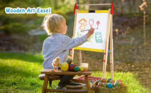 Creative and Learning Toys Every kid has a rich world in his mind. They have a strong desire for graffiti.Double-sided drawing board includes whiteboard and blackboard which has a large drawing space and can be used by 2 kids at the same time. It can satisfy kid’s love of graffiti and inspire kid’s imagination and creativity. Abundant Art Accessories Accessories include magnetic letters, numbers, animals, graphics, drawing cups, dust-free chalk, etc., which add fun to kids in the process of writing and drawing. Storage Trays The large storage tray can store the painting cup and all other art supplies, so you don’t worry about not finding the accessories when kids use it next time. Note: · Please use a wet cloth to erase the marks of the dust-free chalk on chalkboard. · Please tear off the transparent protective film on the surface of the chalkboard and whiteboard before use. Our magnetic teaching easel can be adjusted from 38″ to 51.9″. You can adjust the appropriate height according to the height of the child. Material Wood+Magnet Wood+Magnet Wood+Magnet Recommended age 3 years and up 3 years and up 3 years and up Check Offer Price Weight: 5.58 kg Dimensions: 72.2 x 56 x 1.2 cm; 5.58 Kilograms Brand: Bee bee Run Model: MZ-060 Colour: Blue and Yellow Colour: Blue and Yellow